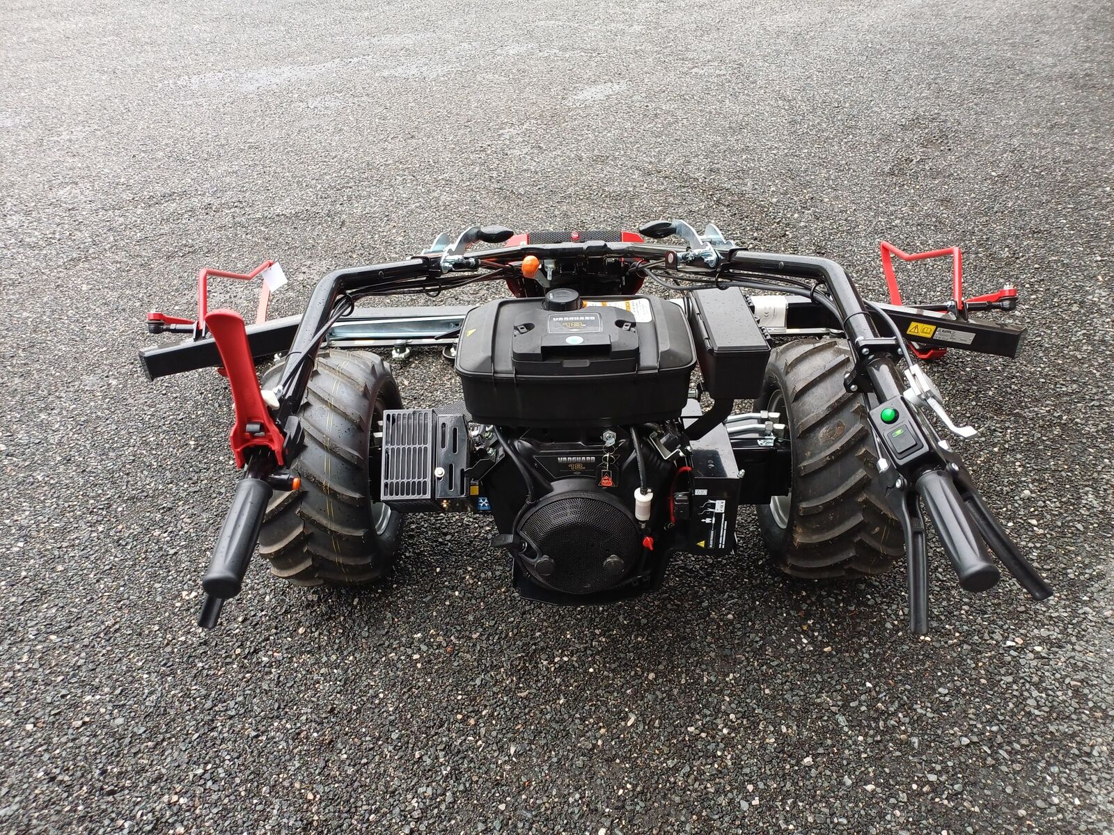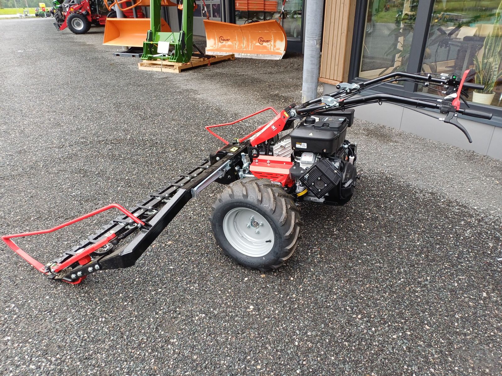 Köppl BT 18 *Fahrantrieb: stufenloser hydraulischer Fahrantrieb *Geschwindigkeitsverstellung Easy-Drive mit Power-Shuttle *Hydraulikölkühler mit autom. Kühlerreinigung, *Lasthalteventile, Standradblockierung *Freilaufschaltung: Bypassventil für Schiebebetrieb *Geschwindigkeit: Vorwärts: 0 - 8 km/h, Rückwärts: 0 - 4 km/h *Lenkung: Turnaround-Aktivlenkung, Zero turn, *Hangtauglichkeit: bis 120% *Holm: Vibrationsgedämpfter Holm, werkzeuglose Höheneinstellung, seitlich schwenkbar 20° links/rechts *Kupplung: Druckbremskupplung *Zapfwelle: Mechanisch, 837 U/min *inkl. Zubehör: Betriebsstundenzähler, Grundplatte-Fanghakenflansch, Motoransaugschutzgitter, Werkzeugbox, *2 Zylinder, 4-Takt-Benzinmotor 13,4 kw / 18,2 PS, *Vergaser für Hangtauglichkeit über 45° incl. Aufpreis Breitspurachse spezial incl. Aufpreis Motorgruppe (18,2 PS) - E-Start incl. Aufpreis Easy Drive - elektr. Geschwindigkeitsverstellung incl. Aufpreis Lasthaken kpl. (Satz) *Breitreifen 23 x 10.50 x 12 AS *Potalmähwerk Köppl KDP 238