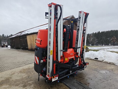 Kubota Rundballenpresse BF3255 (VICON RF 4325) mit 25 Messer, Druckluftbremse und ISOBUS-Steuerung Vorführmaschine mit 208 Ballen Technische Daten Ballendurchmesser (m): 1,25 Ballenbreite (m): 1,20 Bereifung: 15,0 / 55-17 Gesamtlänge (m): 4,10 Gesamthöhe (m): 2,30 Gesamtbreite (m): 2,52 Zapfwellendrehzahl (U/min): 540 Hydraulik: 2 EW Produktvorteile - 2,20 m Pickup mit doppelter Kurvenbahn und 5 Zinkenreihen - Doppelte Zinkenträgerrohrabstützung - Geteilter Hauptantrieb für Rotor und Presskammer - 1 1/4″ Hauptantriebsketten - SuperCut-14 Schneidwerk mit Einzelmessersicherung - SuperCut-25 Schneidwerk mit Einzelmessersicherung und Gruppenschaltung (0/12/13/25) - Parallel absenkbarer Schneidwerksboden - PowerMaX-Ballenkammer mit 17 gerippten Presskammerwalzen - Gerippte Presskammerwalzen speziell entwickelt für schwerste Silagebedingungen - Schmierbare Presswalzenlager und zentrale Schmierleisten - Schnelle und zuverlässige PowerBind-Netzbindung - ISOBUS-gesteuert, alle Einstellungen aus der Schlepperkabine Die Festkammerpresse BF3255 ist der Spezialist für schwierige Bedingungen, ideal für nasse Silage und große Erntemengen. Die 17 profilierten Heavy Duty-Walzen mit verstärkten Stützscheiben sorgen für hochverdichtete, perfekt geformte Rundballen. SOFORT VERFÜGBAR! AUF LAGER! Alle Angaben ohne Gewähr! Irrtümer vorbehalten! Verkauf von Neumaschinen nur im eigenen Verkaufsgebiet! Besichtigung während unserer Öffnungszeiten möglich.