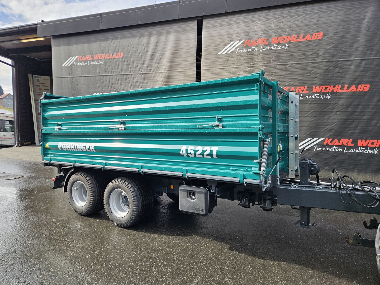 Pühringer 4522L-T - Baujahr - Tandem Dreiseitenkipper Type 4522 L-T - Grundbordwände 500mm - Bordwandhebefedern - Seitliche Zentralverriegelung rechts und links - Zweileiter Druckluftbremse - Pendelstahl-Aufsatwände 4500x2250x500mm - automatischer lastabhängiger Bremskraftregler ALB - Tandemvereifung 19.0/45X17/14 - Typenschein 40 km/h - Stützwinde mit Überstzungsgetriebe - Heckklappe hydraulisch doppelwirkend zum Öffnen und Schließen 400mm hoch - erhöhtes Drehlager für Heckbordwand 100mm - 4 Stk. Zurrhacken VIP im Brückenboden versenkt 3,15to - Eigengewicht 2820 kg - Werkzeugkasten PVC - zusätzliche Bordwandversteifung links u. rechts - Rahmen antrazit 7016 - Bordwnde opalgrün 6026