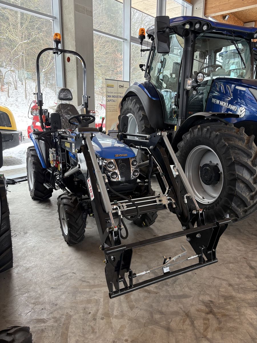 AUSSTELLUNGSTRAKTOR! SOFORT VERFÜGBAR! SOLIS 26 9+9 XL 4WD mit Radial-Bereifung, inkl. AGROMASZ Frontlader mit Kreuzhebelsteuerung, Parallelführung und EURO-Aufnahme, inkl. Bereitstellung und Papiere