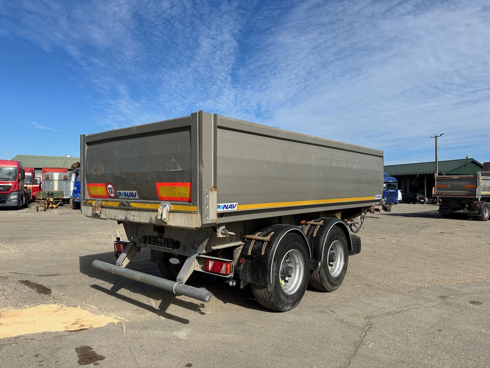 PANAV dvojstranný vyklápač FE r.v. 01/2019, D: 5,10m, V: 1,00m, Š: 2,50m, bubnové brzdy, nápravy BWP, pozinkované šasi, stav pneu 2x80%, 2x10% váha- 4.370 kg, celková hmotnosť- 18.000 kg, vozidlo má zahraničný TP,