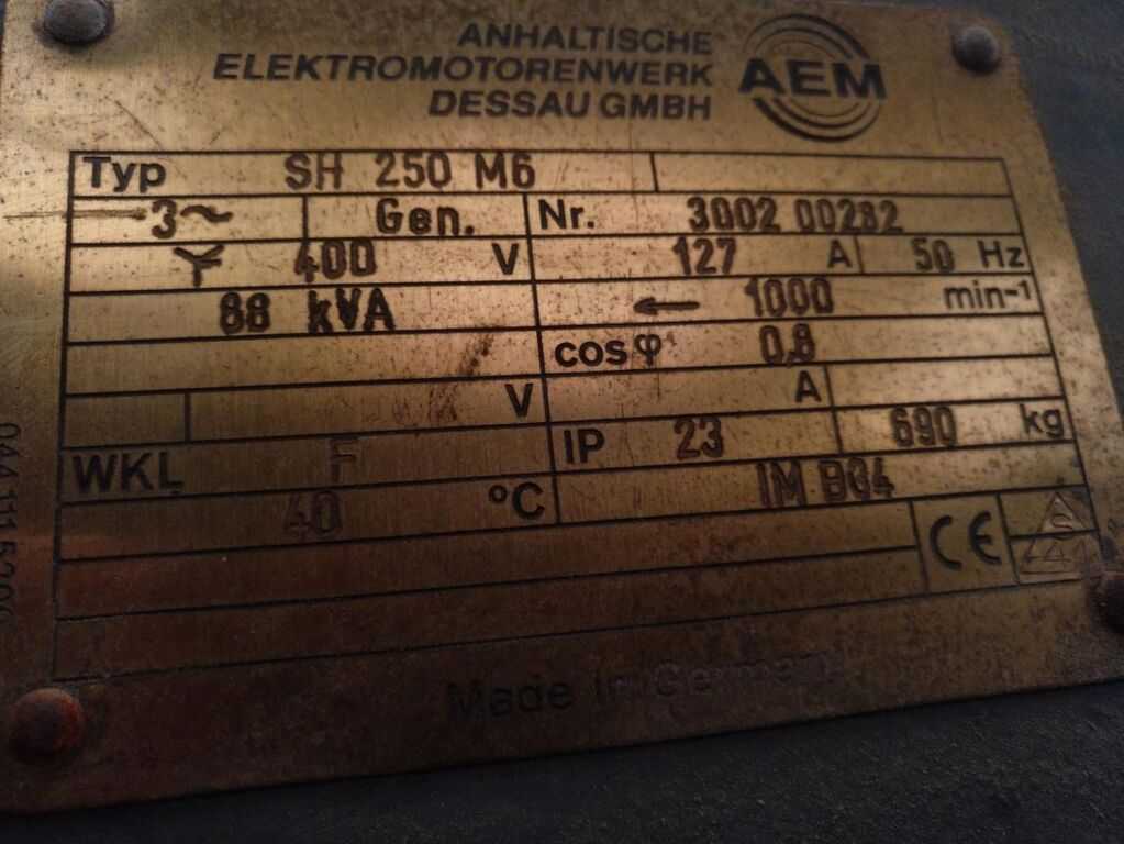 Notstromaggregat 88 kVA Zapfwellenantrieb(Int-Nr.: 14365) Typ SH 250 M6 88 kVA 400 V 1000 U/min., 50 HZ 127 ZA