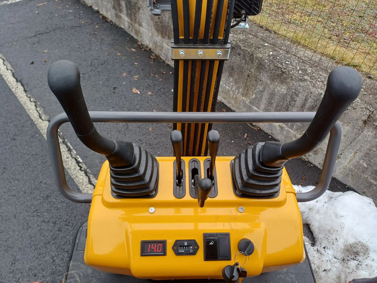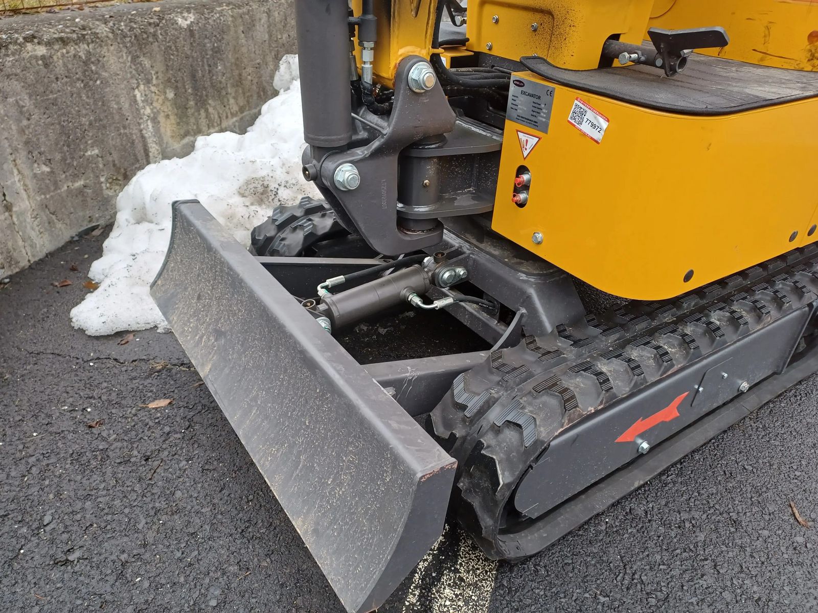 Der Minibagger ist mit einem mechanischen Schnellwechsler ausgestattet, der einen schnellen Austausch der Anbaugeräte ermöglicht. Zur Ausstattung gehören zudem ein 30er und 50er Tieflöffel sowie