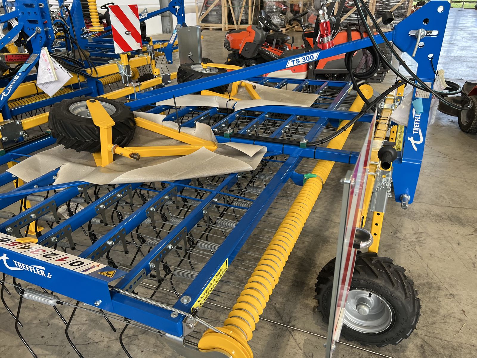 Treffler TS300 Präzisions-Zinkenstriegel + Kombifeder 100-5000g + Zinken 120° Hartmetallbestückt + Hydraulische Zinkendruckverstellung + Pendelstützräder hinten + Beleuchtung u. Warntafeln LED Die Maschine ist in Burgkirchen lagernd.