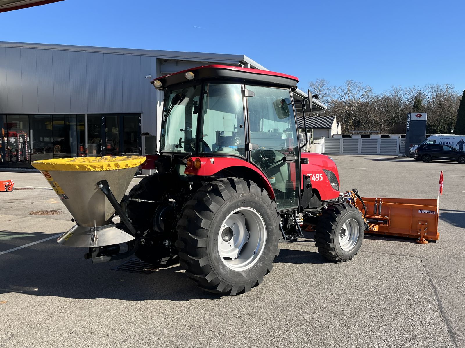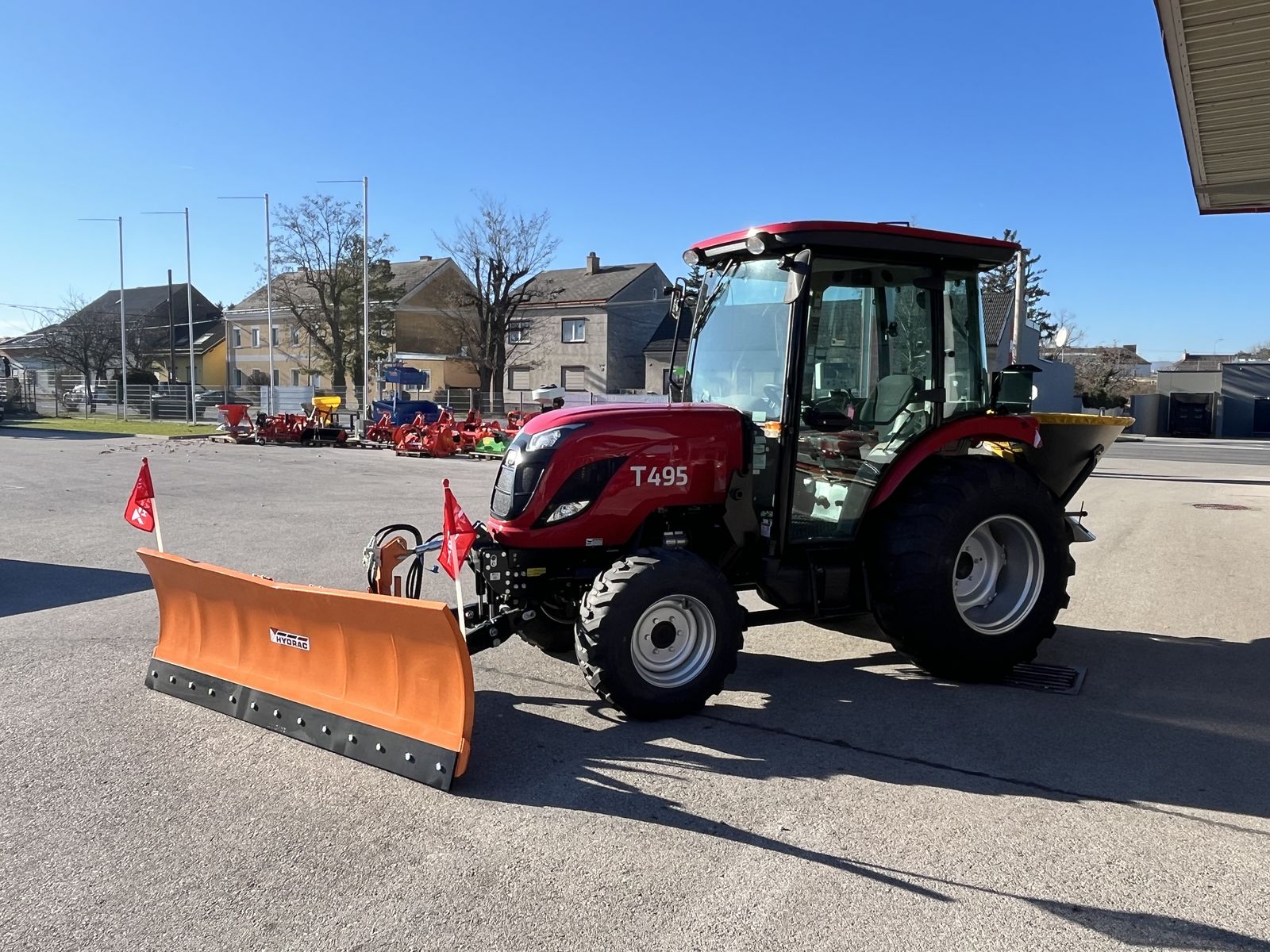 MOTOR: max. Leistung 48 PS / 35 kW, 4-Zylinder-Dieselmotor, 2286 cm³, Nenndrehzahl 2600 U/min; Abgasstufe 5; ANTRIEB: Shuttle-Wendegetriebe mit 8 Vorwärts- und 8 Rückwärtsgängen; Höchstgeschwindigkeit 30 km/h; zuschaltbarer Allradantrieb; Einscheiben-Trockenkupplung; Servolenkung; Scheibenbremsen; elektrohydraulisch geschaltene Heckzapfwelle 540 U/min; Industriebereifung; 12x16,5 vorne und 17,5x24 hinten; Außenbreite ca 1.80 m; HYDRAULIK: 3-Punkt-Hydraulikgestänge KAT1 mit 1733 kg Hubkraft, mechanische Hubwerksregelung MHR; Hydraulikölkühler; Hydraulikpumpen mit max. 45 l/min (29+16) Leistung; 1 doppeltwirkendes Steuerventil mit 2 Kupplungen am Heck; Joystick-Steuerventil mit 2 x dw mittig angeordnet; AUSSTATTUNG: Komfortkabine mit Heizung und Lüftung und Klimaanlage; Scheibenwisch-/Waschanlage vorne und hinten, ausstellbare Front- und Heckscheibe, 2 Arbeitsscheinwerfer vorne und hinten, gefederter Komfortsitz mit Stoffbezug und Sicherheitsgurt, Fahrerplattform mit ergonomisch angeordneten Bedienungselementen, Beleuchtungsanlage, Anhängevorrichtung mit Steckbolzen; Gewicht Basismaschine ohne Zubehör ca 1.904 kg; Frontkraftheber mit Schnellkuppler KAT 1 Inkl. 2 Zusatzleitungen mit Steckkupplungen zur Betätigung der Schwenkvorrichtung Schneeschild Vorbereitung zur Aufnahme eines Original-Frontladers HYDRAC SK-230 Schneeschild 2.3 m Gesamtbreite, 2.03 m Räumbreite, 3-Punkt Anbauträger, hydraulische Seitenverstellung 30°, eine Pflugschar mit Klinkautomatik, Stahlschürfleiste, Gleitteller, Warnflaggen; Universal-Trichterstreuer RONDINI SP500 Niro 350l / 500kg Fassungsvermögen Streumengen- bzw.- Breiteneinstellung Gelenkwelle, Abdeckplane Streuschieberbetätigung hydraulisch Eintragung des COC in die Genehmigungsdatenbank Optional: - IceFighter XF SA3 300l auf Anfrage - Originalfrontlader mit Erdschaufel (Aufpreis € 2.000,- inkl. MwSt.)