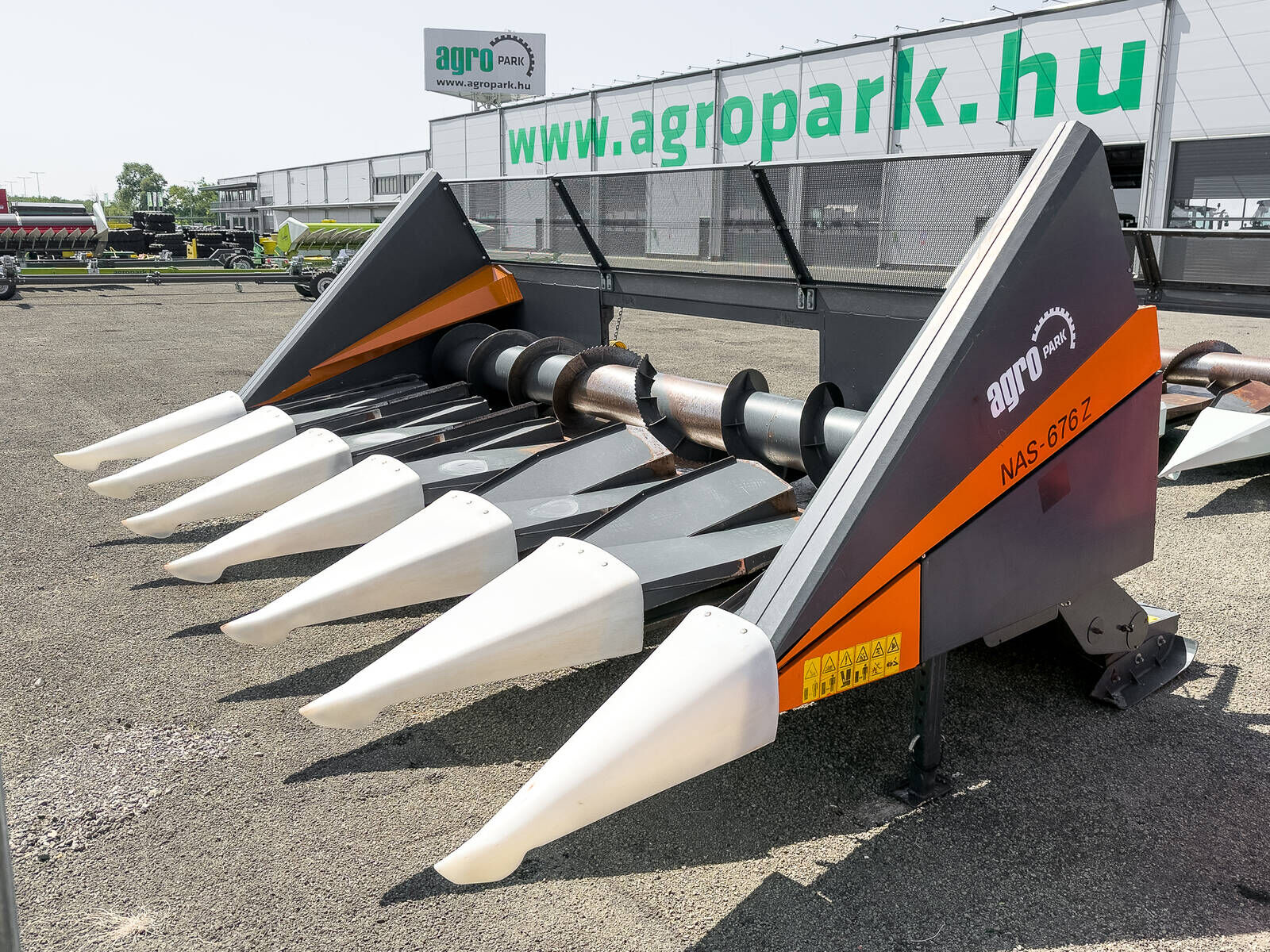 NAS 676 ZSonnenblumenschneidwerk mit Häcksler, John Deere Montagehalterung, festem Rahmen, 6 Reihen, 75 cm ReihenabstandBaujahr: 2018Gewicht: 1810 kgTransportwa
