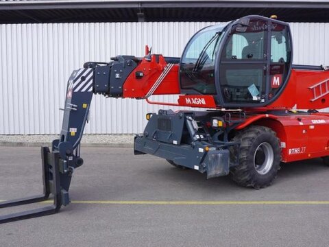 - Fahrzeug: Einfachzusatzhydraulik- Mast: Einfachzusatzhydraulik- Gabelträger- Gabelzinken MAGNI Gabelträger mit Wellenaufnahme- Vollkabine, Türe links geteilt-