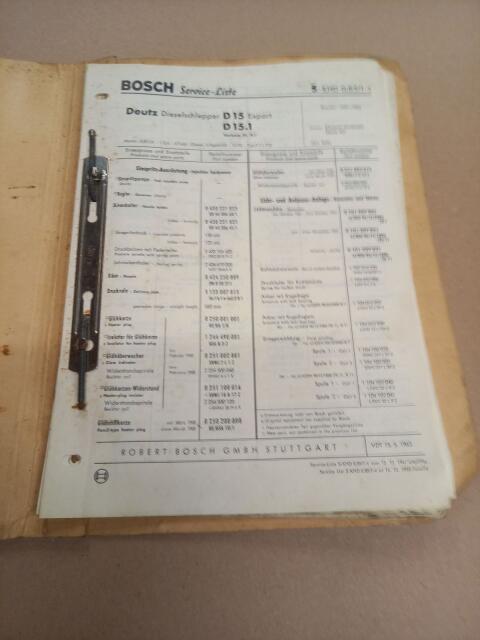 Bosch Service Liste Deutz Traktor für Bastler und Hobbytüftler, Heimwerker, Schrauber, Spezialisten, Oldtimer-Restaurierung. Landtechnik-Teile inkl. Versand für € 25
