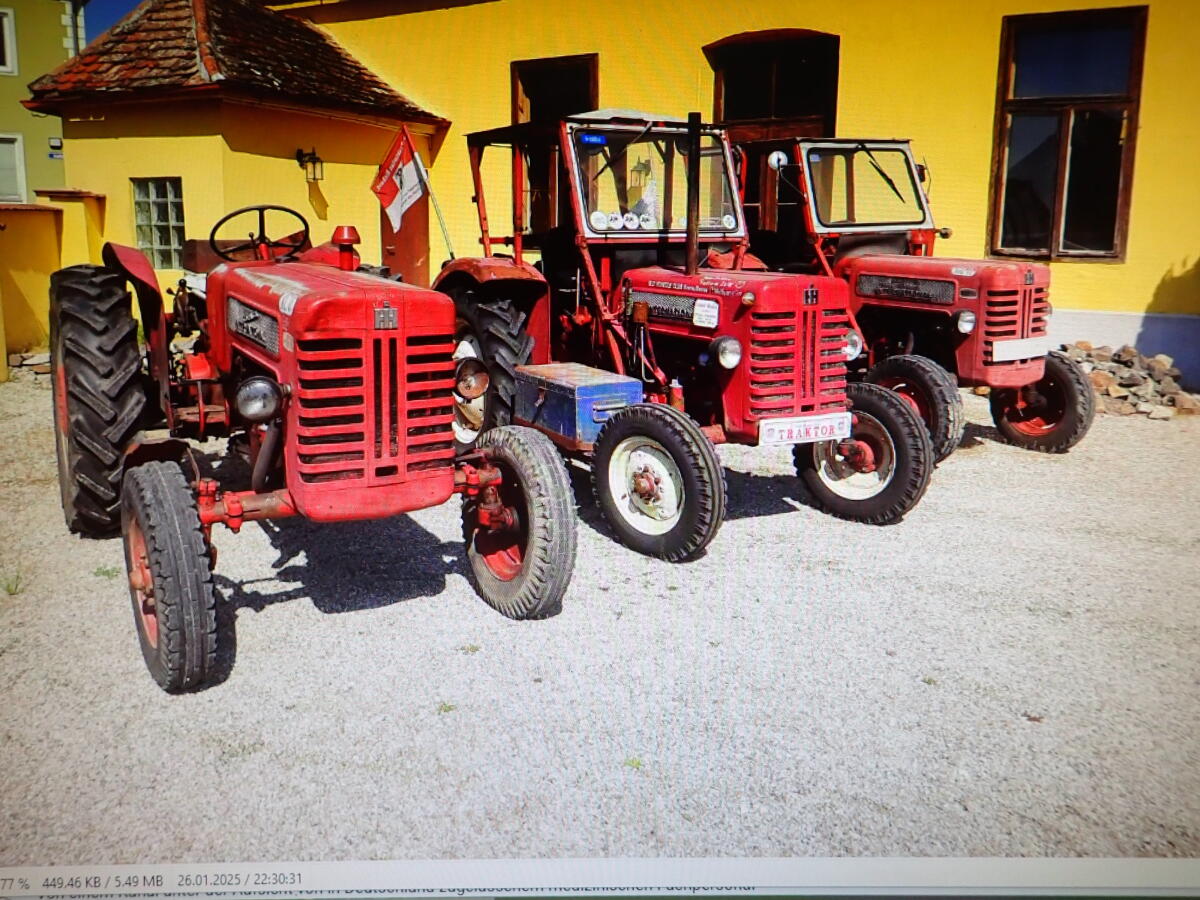 Verkaufe meine IHC McCormick-Sammlung wegen Hobbyaufgabe. Es sind 3 Stk. B275, Bj. 1965/66. Preise: 2 Stk. mindestens € 3.000,-/Stk., 1x € 6.000,- (der hat einen neuen Motor mit ca. 150 Bstd., ca. € 3.500,-, der auf dem Foto in der Mitte). Großteils neue bzw. gute Reifen. Der mittlere ist straßentauglich, die beiden anderen ein wenig zum Herrichten. Gute aufbaufähige gesunde Basis. Paketpreis für alle 3 mit diversen Reserveteilen, Kabinen etc., Fixpreis € 10.500,-.