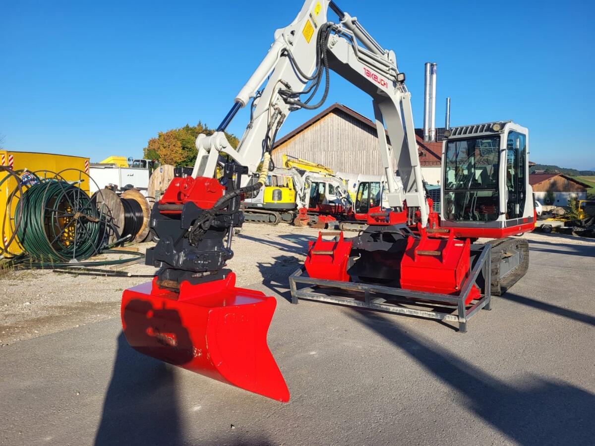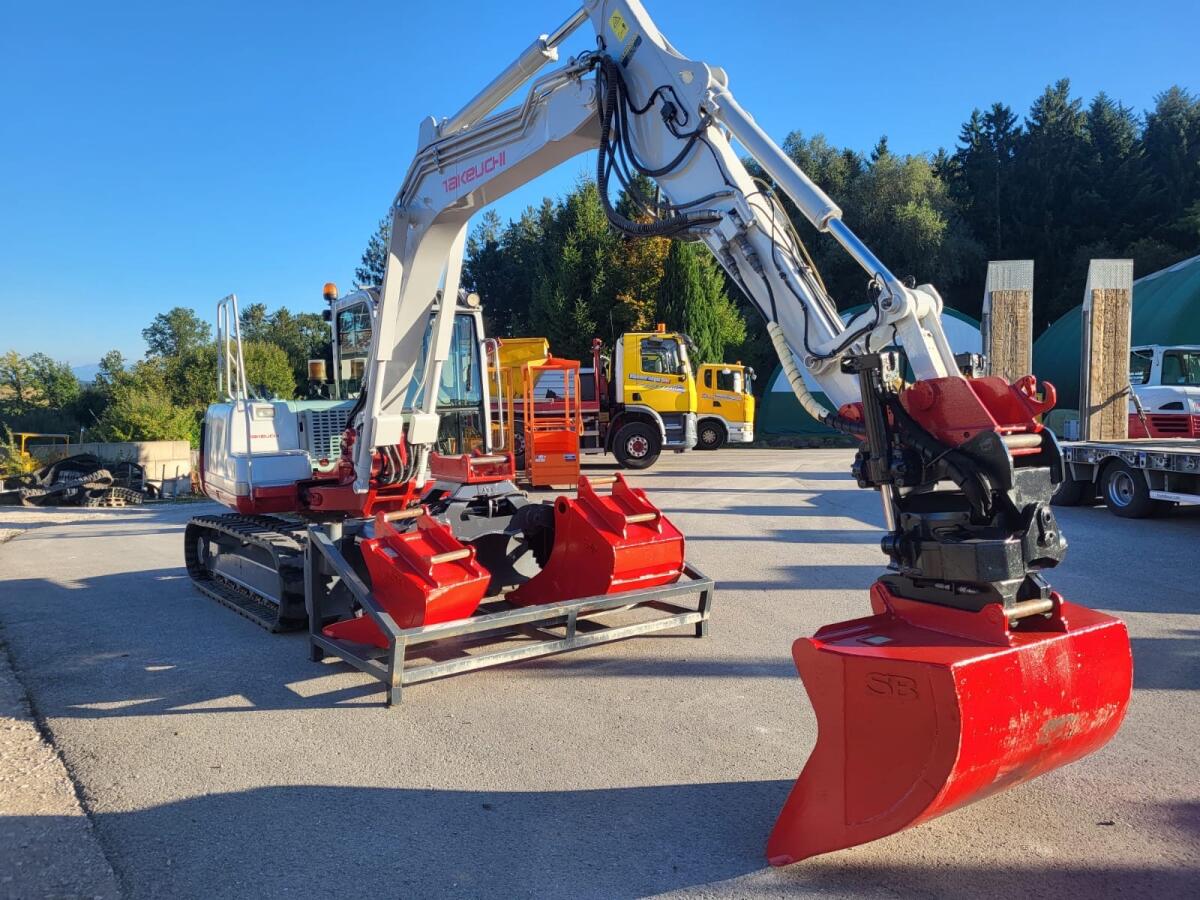 Hydraulikbagger Takeuchi TB175 mit Rototilt. 1 Böchungslöffel, 2 Tieflöffel, Hydraulikhammer, Sortiergreifer, Löffelkiste, neuwertige Gummiketten. Preis nach Kontakt.