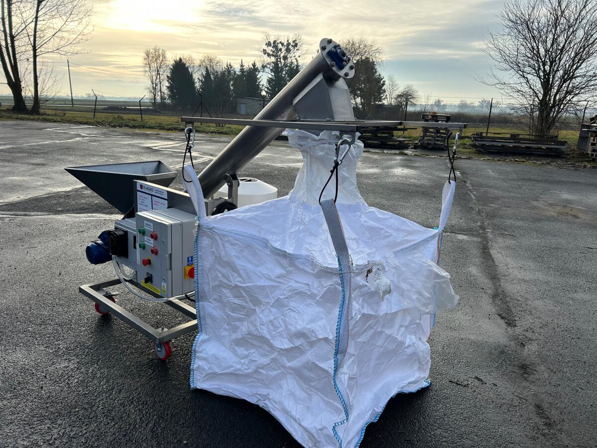 Beizmaschine für Getreide und Hülsenfrüchte, Nettopreis, Produktivität 3-5 t/h. Es ist mit einem peristaltischen Spender ausgestattet, der bei jeder Leistung ein präzises Beizen ermöglicht. Die Getreidebeizmaschine ist mit einer Spezialschnecke mit Gummieinlage ausgestattet, die das behandelte Saatgut vor Beschädigungen schützt. Konischer Tank 50 l, vollständige Entleerung des Tanks beim Beizen oder Waschen der Beizmaschine, 1,5 kW Motor mit Schneckengetriebe. Das Mischsystem besteht aus: Mischpumpe (40 l/min), PP-Rohren und Kugelhähnen. Rahmenprofil 40x40, Wand 3 mm. Fi 100-mm-Räder, 4 Stk. Lager unten in der Nähe des Motors und oben Big-Bag-Halterung, 1 Stk. 32A 5P 400V Stecker, Kabellänge 5 m.