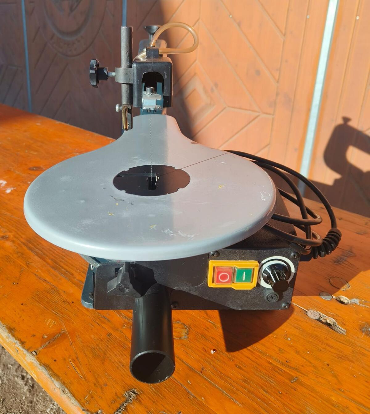 Dekupiersäge der Marke Einhell mit schwenkbarem Sägetisch und stufenlos einstellbarer Drehzahl. Ersatzsägeblätter vorhanden. Preis VB.