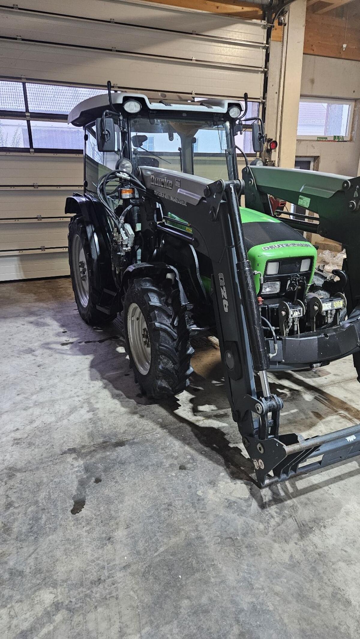 Sehr gepflegter Deutz-Fahr Agroplus Traktor, 3 Zylinder mit super bewährter Technik (40 km/h reduziert, Stop&Go ohne Kupplung, Power Shuttle, 4-Rad-Bremse, el. Allrad-Sperre und Zapfwellenschaltung, Superkomfort mit Klima und Heizung, Wischer hinten, 45V 45 R Gänge, Sonnendach mit Fenster, Sauter Fronthydraulik, massive Ausführung mit 2 x Faster für Anbaugeräte, 5 dw Stg., automatische, höhenverstellbare Anhängerkupplung, luftgefederter Fahrersitz, Bereifung VA: 280/85 R 20, Zustand: 100%, Bereifung HA: 520/85 R 32, Zustand: 40%, Breite außen 1,75 m, Frontlader Quicke Q26, Parallelführung, Schwingungsdämpfung, 3. Steuerheit, Euro-Werkzeugaufnahme, Schnellkuppler. Wenig Frontlader-Einsätze.