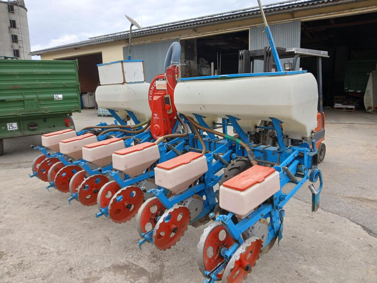 Einzelkornsägerät für Mais, Pferdebohnen, Sonnenblumen, Soja, aktuell für 6-reihig Mais vorbereitet, 8 Körper vorhanden, inkl. Düngerkasten, einsatzbereit und guter Zustand, Leerstandsüberwachung Saatkasten, Reihenabschaltung, Fahrgassenmarkierung, Bj. 1990; Vorbesitzer 1. Gerne telefonisch melden.