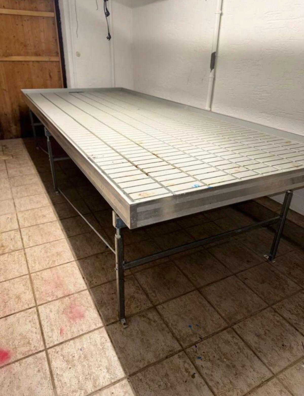 Rolltisch für Gärtnerei oder Indoor-Pflanzenanbau, Maße: 1,60 m x 4,00 m, mit Abfluss für optimale Bewässerung, Zustand: fast neuwertig, platzsparendes Design, ideal für enge Räume, perfekt für professionelle Gärtnereien, Hobby-Gärtner oder Indoor-Anbau.