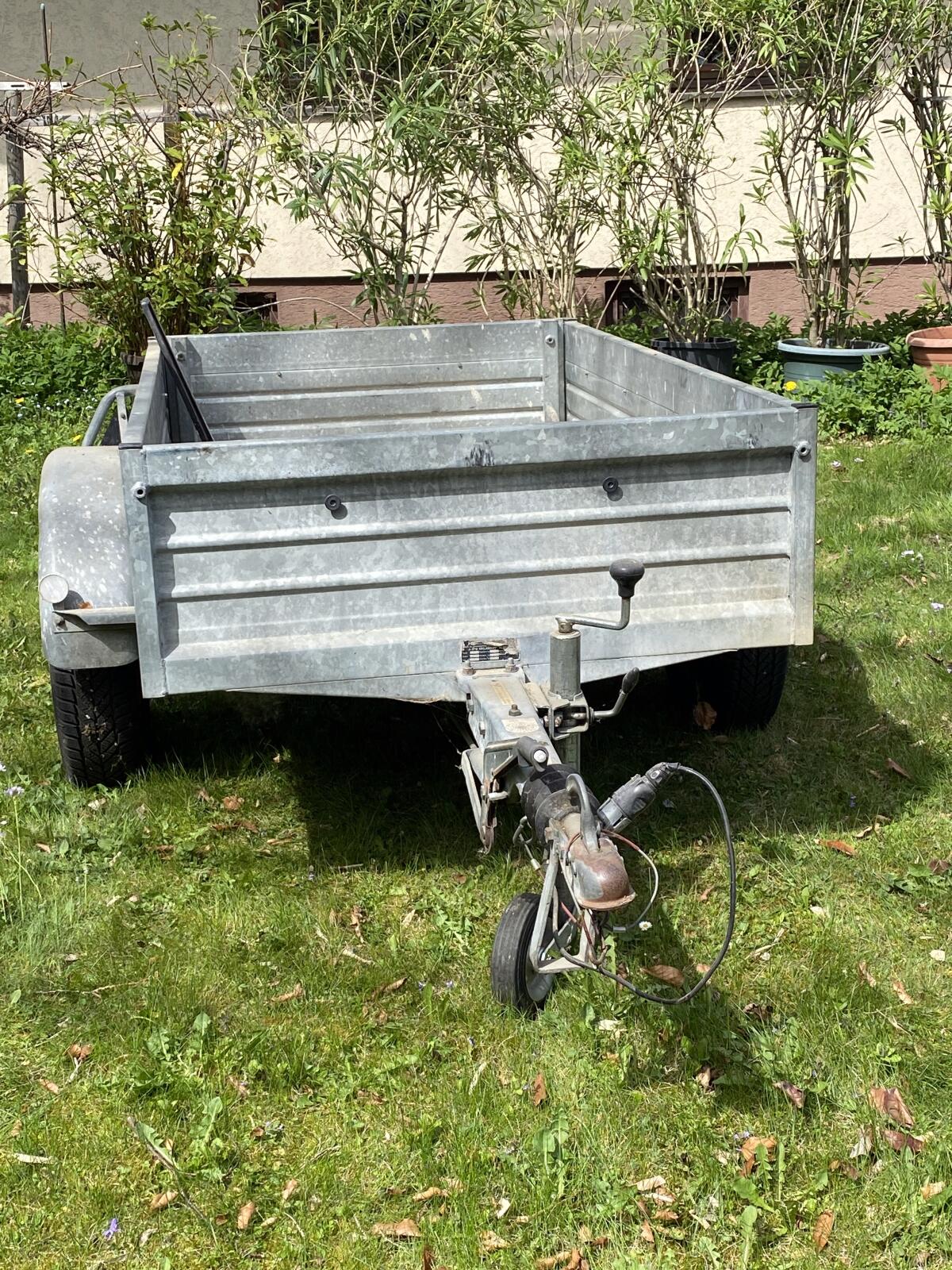 Selbstabholung in Edlach an der Rax (= Reichenau an der Rax). PA 190 EK Einachsanhänger gefedert, offener Ladekasten, abgemeldet Januar 2023. Auflaufbremse (feststellbare Innenbackenbremse mechanisch), Seilrissbremse bis 750 kg Gesamt, Eigengewicht 195 kg, höchste Belastung 555 kg. Abmessungen: 2.800 x 1.550 x 910. Kraftübertragung: Anhängerdeichsel mit Kugelpfanne. Zulässige Achslast bis 750 kg. Reifen neu.