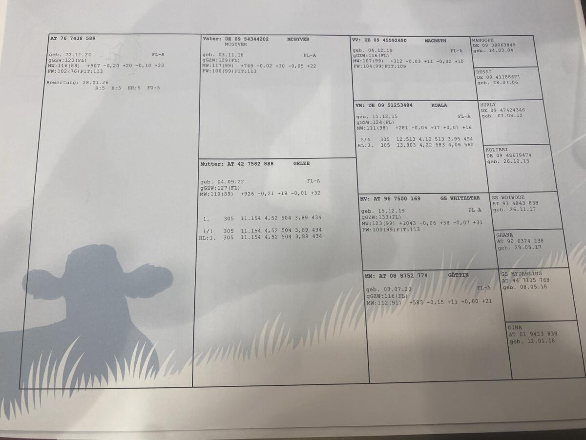 Gekört, beringt, führig und Herden tauglich. Hat bereits sechs bestätigte Trächtigkeiten Foto und Typisierungsergebnis auf Anfrage
