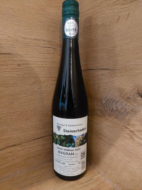 Sprzedaż wina białego odmiany Grüner Veltliner, wina wysokiej jakości, rozlewanego do butelek o pojemności 0,75 l. Cena za butelkę 5,50 €.