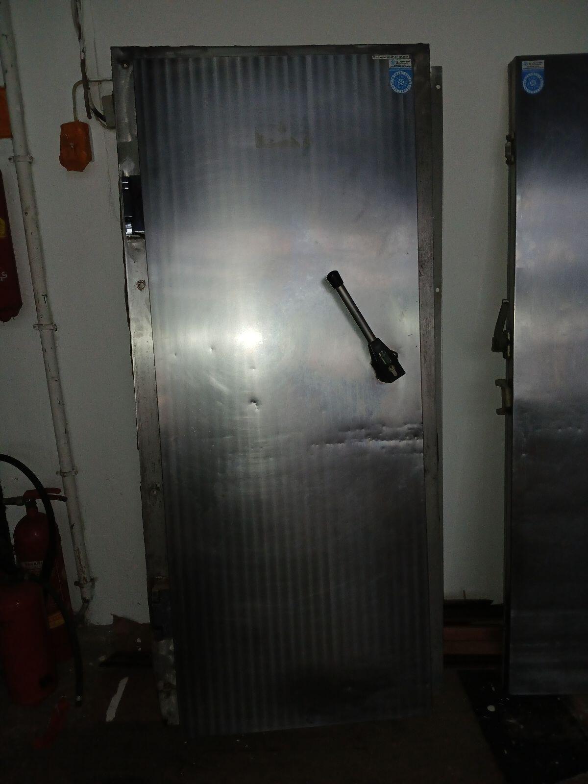Nirosta Kühlraumtüren, erste Tür 85 x 190 ohne Scharnier, mit Scharnier 91,5 x 190, zweite Tür 75 x 190, nur die Tür mit Rahmen 90 x 195.