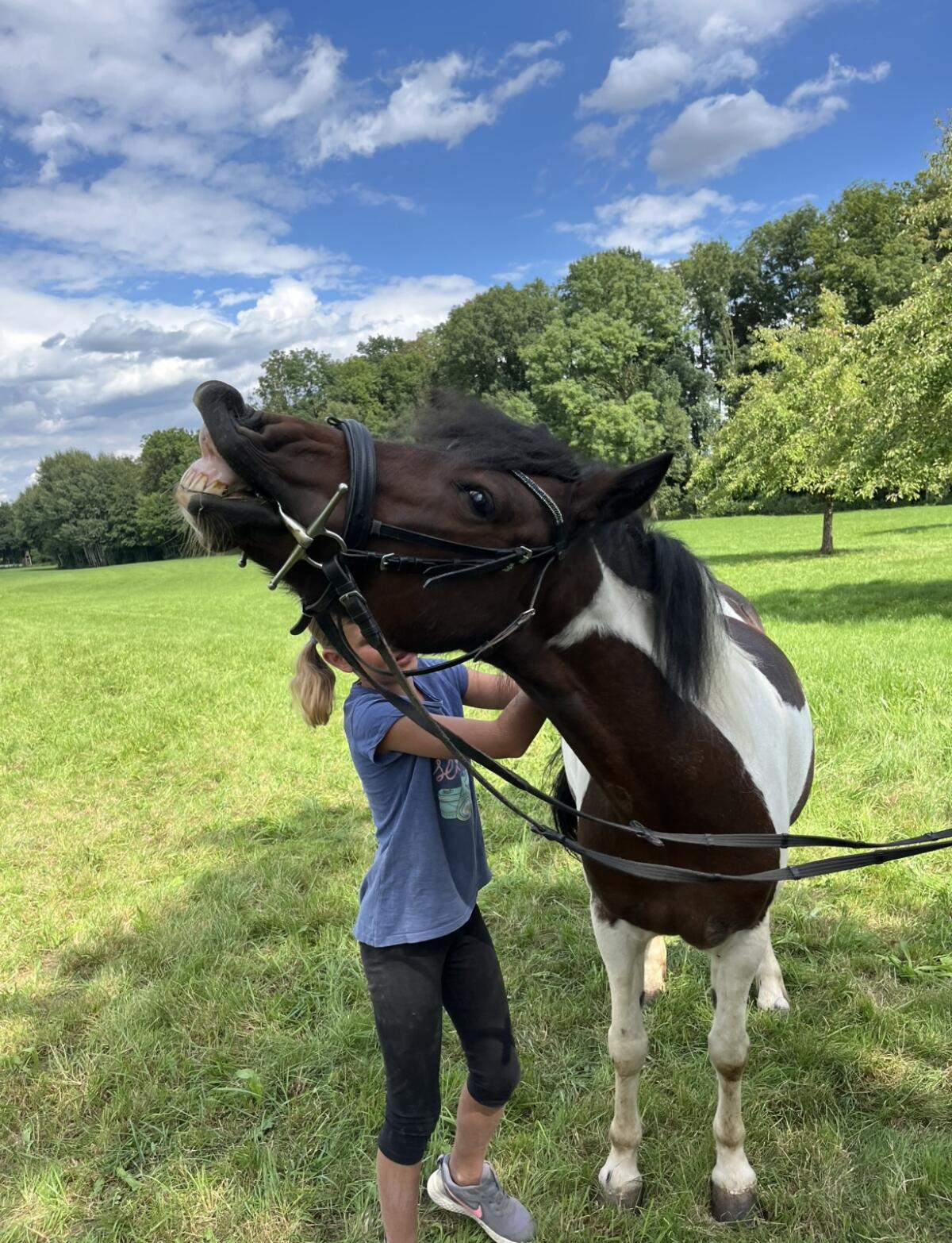 9-jährige Pony Stute Elli mit Stockmaß 1,25 m. Preis VHB! Sie geht bei mir in der Reittherapie und im kleinen Schulbetrieb. An der Longe, beim geführten Reiten, Ausritten und in der Reittherapie ist sie das verlässlichste Pony für Kinder von klein bis groß. Sie kennt sämtliche Materialien wie Tücher, Bälle, Würfel, Hütchen, Fahnen, etc. Auch bei Reitcamps, Ferienspaß Aktionen mit Ponyreiten, Ponypainting und Co. ist sie immer verlässlich im Einsatz. Sie lässt sich auch super brav von den Kindern longieren. Ich habe sie schon 5 Jahre und hier hat sie noch keinen einzigen „Bocker“ gemacht. Gesund, regelmäßig entwurmt, alle 6 Wochen Barhufpflege. Absolut unkompliziert und herdenverträglich.