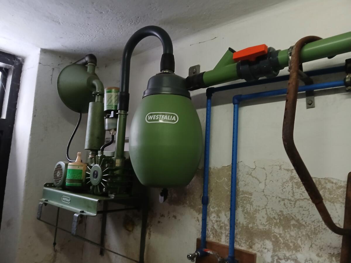 Rohrmelkanlage Westfalia, eventuell mit Waschautomat TURBOSTAR (neuwertig). Gemolken wurden 12 Kühe. Anlage wurde regelmäßig serviciert, auch neue Zitzengummis usw. vorhanden. Kann jederzeit besichtigt werden. Selbstabbau. Preis nach Absprache.