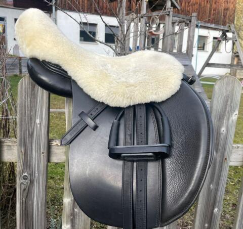 Sitzgröße 17': Gesamtlänge ca. 40 cm, Gewicht ca. 5 kg. Sitzgröße 18': Gesamtlänge ca. 42 cm, Gewicht ca. 5 kg. Material: Büffelleder, offene Steigbügelaufhängung, wechselbares Kopfeisen Rot: ca. 22 cm. Sattelbaum aus gespritztem, geformtem Kunststoff mit einem anatomisch geschnittenem Vorderzwiesel, das den Widerrist frei hält. Nur einmal benutzt. Neuwertig - siehe Bilder. Preis exkl. Versand. Ohne Steigbügel.