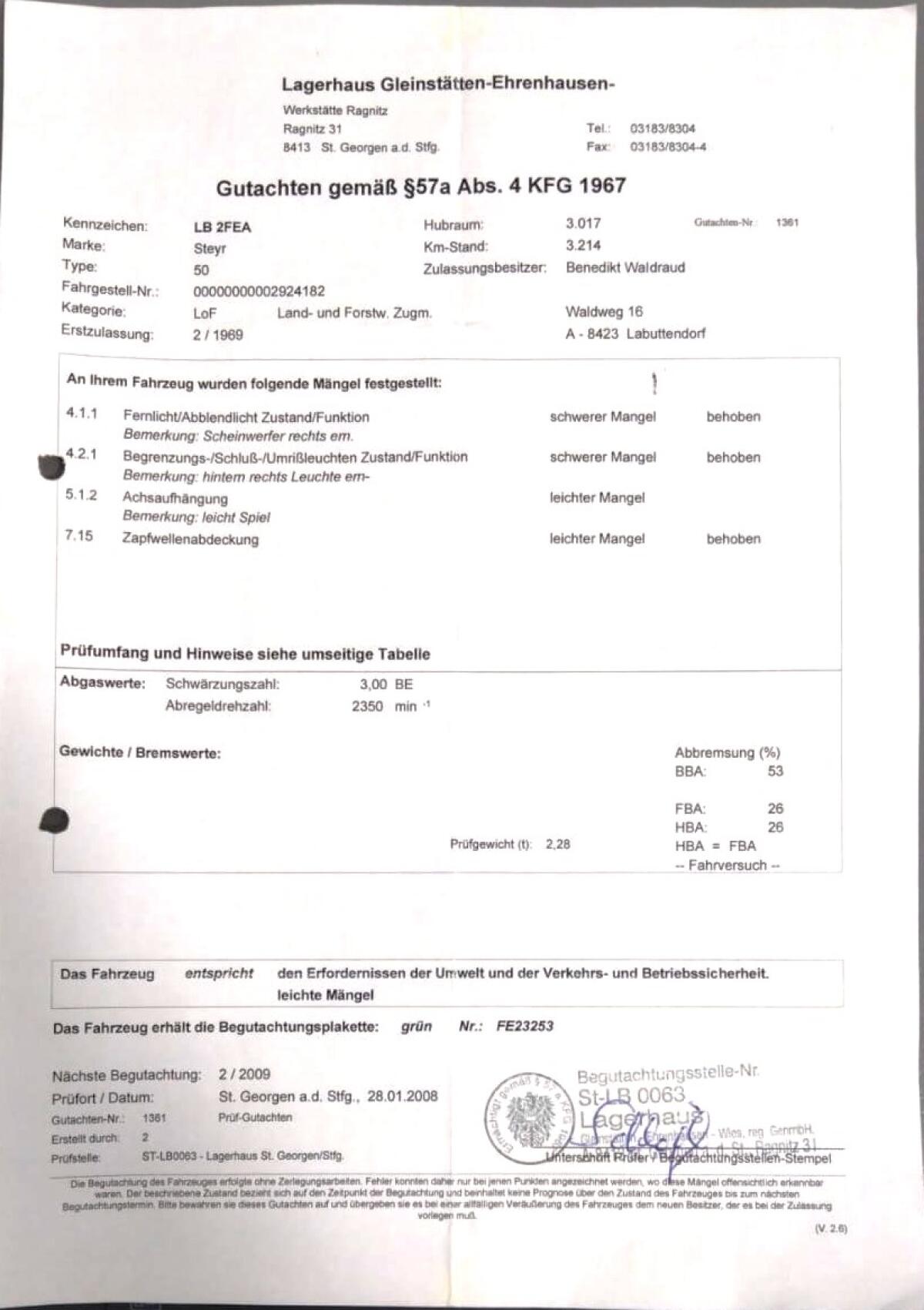 Standort: Ungarn, Nähe Körmend. Überstellung und Reparatur in Österreich geplant. Immer in der Garage, altersgemäßer Zustand. Seit 2008 (3.214 Bstd.) nur selten am Wochenende mit Heckmulde für Grünschnitt genutzt, aktuell 3.377,5 Bstd. Derzeit nicht startbar (vermutlich Starter defekt). Mängel: Beleuchtung ohne Funktion, teils Kabel durchgescheuert, Sprung in Frontscheibe, leichtes Spiel in Achsaufhängung. Besichtigung und Probefahrt möglich. Weitere Auskünfte gerne auf Anfrage.