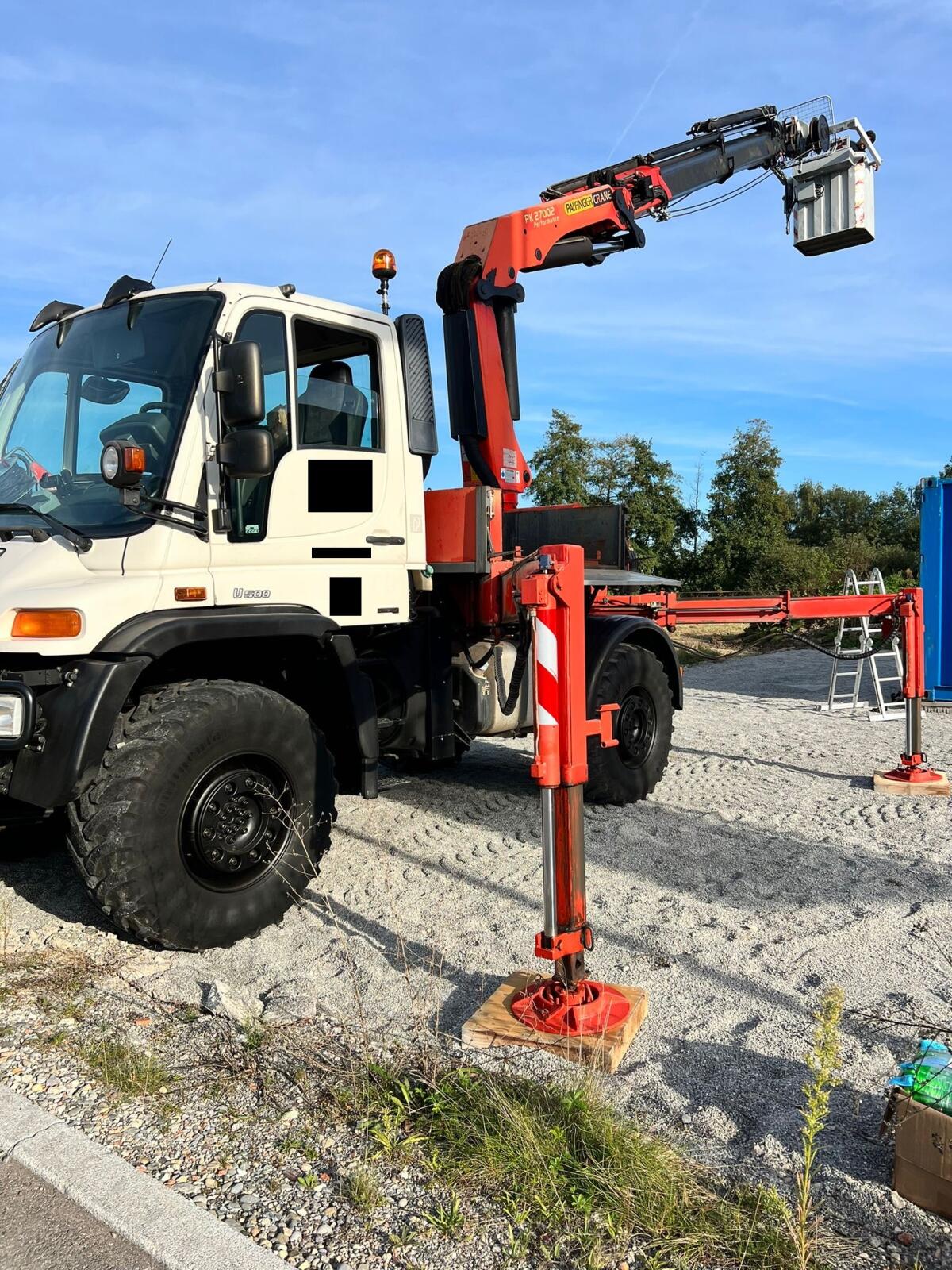 Fahrzeugdetails Modell: Mercedes-Benz Unimog U500 Bj. 2007 Tüv/SP: Gültig, unmittelbar einsatzbereit Scheckheftgepflegt Wartung: Ölwechsel durchgeführt, regelmäßige Inspektionen 5.764 Bstd. Motor und Getriebe laufen einwandfrei Alle hydraulischen Komponenten gewartet und geprüft Sonderausstattung Ladekran: Palfinger PK27002G, komplett überholt und geprüft, Hydrauliköl erneuert Funkfernsteuerung: Scanreco RC400 Werner Arbeitskorb AK300 Werner Seilwinde F70.2 H1 HW 00 14.3 Kinshofer Zweischalengreifer mit Rotator Karosserie und Rahmen in ausgezeichnetem Zustand, keine erkennbaren Schäden oder Durchrostungen Ausführliche Ausstattung per E-Mail erhältlich.