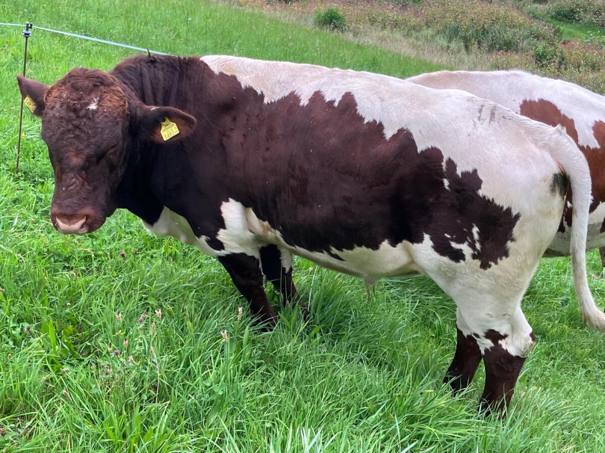 Verkaufe Pinzgauer Stier Bio, genetisch hornlos, reinrassig, geboren am 29.9.2024. Bei Interesse bitte melden.