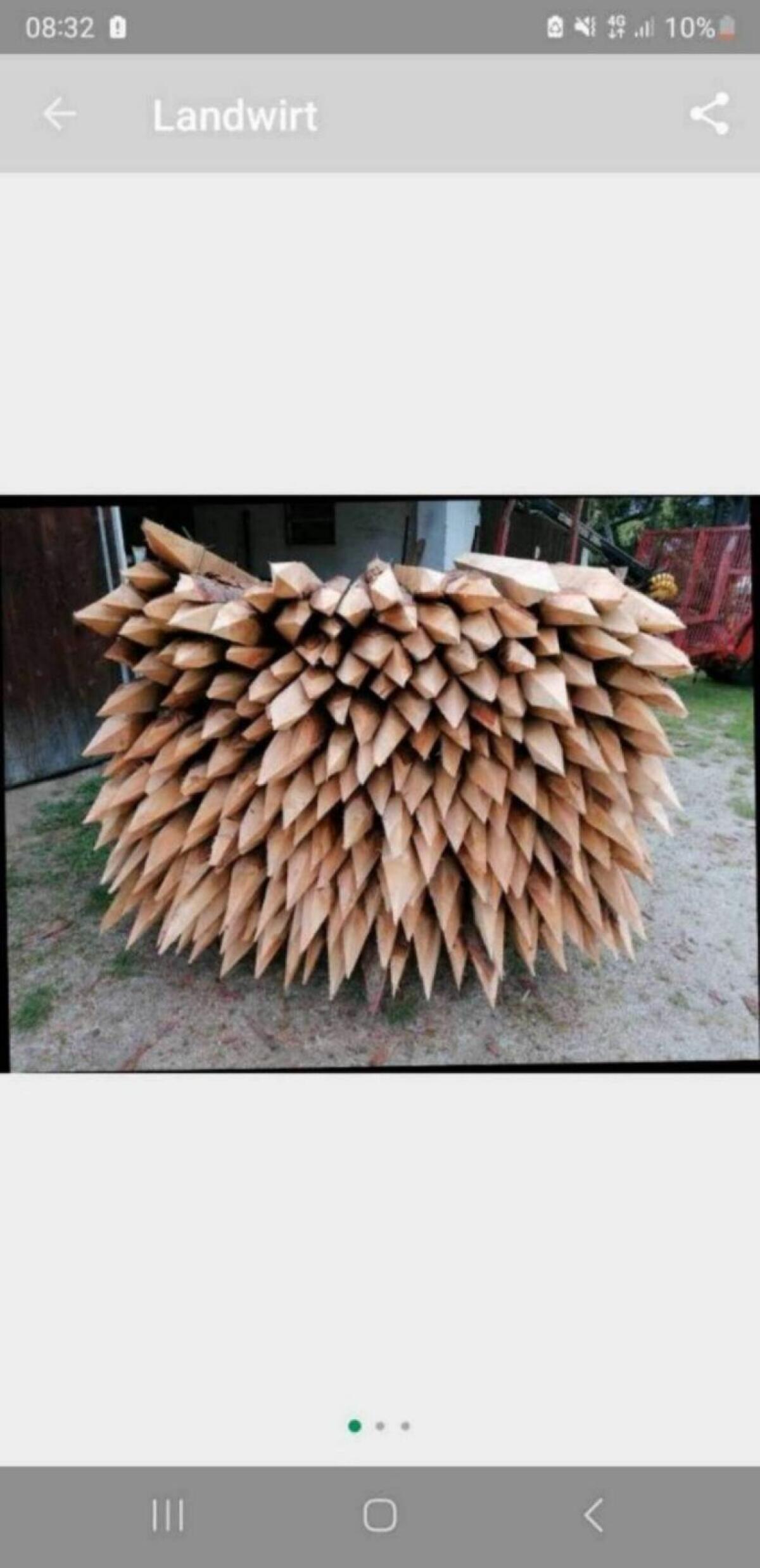 Gute Qualität, Almlärche gespitzt, Lieferung möglich. Länge: 1,80 m, Stärke: ca. 8-10 cm. Vierkant, geviertelt, halbiert und rund. Sind sehr trocken sodass die Rinde sich meistens von selber löst siehe Bild 4. Klein St. Paul.