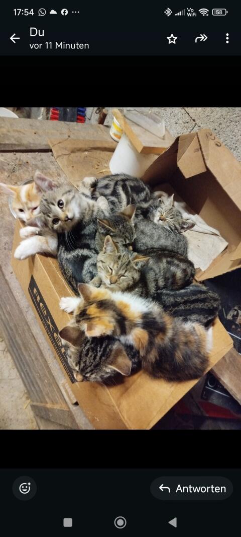 Wir verkaufen unser Kätzchen. Er ist männlich und am 8. August 2025 geboren. Er ist entwurmt und gegen Flöhe behandelt. Die Katzen sind sehr zutraulich und wachsen b
