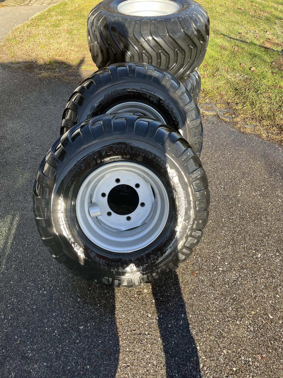 4 Stk. Neuwertige Kompletträder 400 60 15, 5. Felge 6 Loch, LK Dm. 205, innen 160, ET0, von einem Stepa B9 Forstanhänger, wegen Umbereifung abzugeben. Sprzęt leśny i