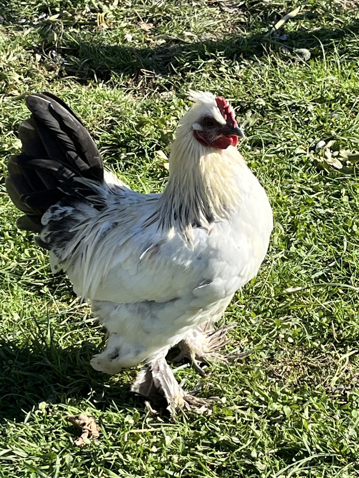 7 Monate alter Hahn, vermutlich ein Blumenhahn, sehr ruhig und friedfertig. Leider kann ich ihn für meine Zucht nicht verwenden. Kury Koguty