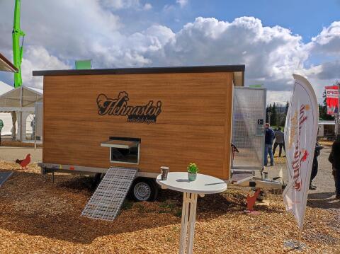 Der mobile Hühnerstall MBHS 50/80 bietet mit Sonderausstattung Platz für bis zu 80 konventionell gehaltene Legehennen. Der isolierte Aufbau auf einem Anhänger bietet