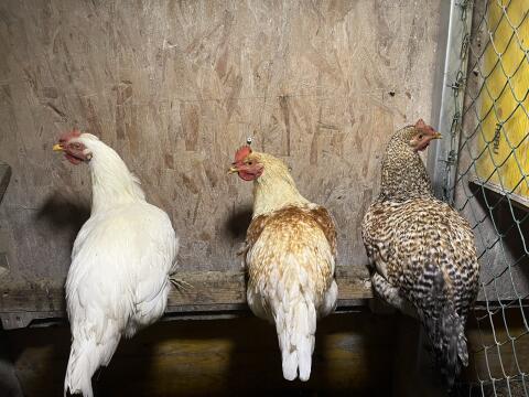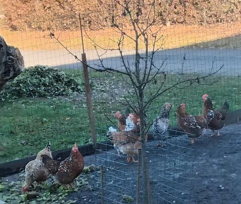 11 legereife Amrockhennen und 1 Hahn abzugeben. Da wir im Februar 2026 einen größeren Stall bekommen, werden wir dann neu einstellen. Die Lohmann Hennen sind ca. 23