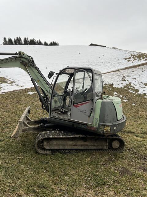 Gebrauchter Neuson 8002 zu verkaufen. Kopfdichtung defekt. Bolzen nur leichtes Spiel, Hydraulikpumpe und Laufwerk sind in Ordnung. Zentralschmierung sind zwei Schläu