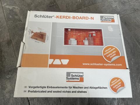 Schlüter Kerdi Board, vorgebaute Nische für den Badbau. Kann aus dem Fermacell ausgespart werden und eingesetzt werden. Ist abgedichtet und Dichtmanschette für die U