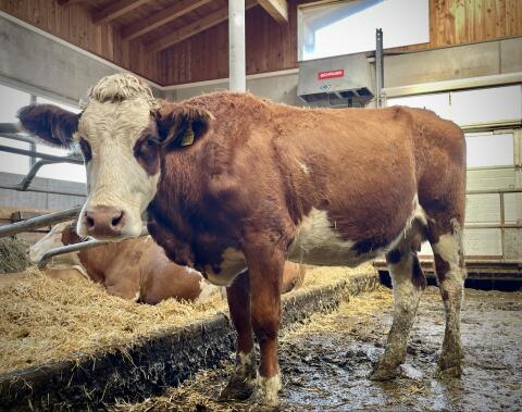 Verkaufe Bio-Fleckvieh-Jungkuh, ideal als Mutterkuh, Kälber gewohnt, Geb: 26.09.2022, kleinrahmig, gen. hornlos, frisch gekalbt, 1. Kalb 29.09.2025, aus Bio-Heubetri