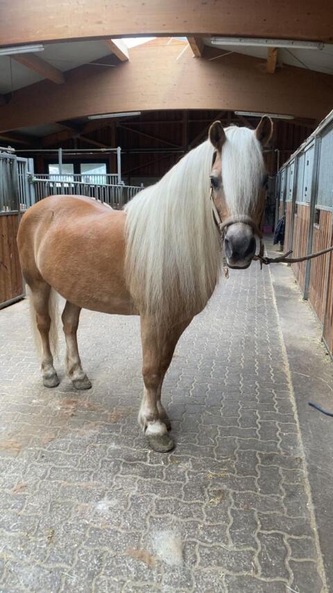 Zum Verkauf steht eine 3 ½-jährige Haflingerstute, die bisher sicher im Schritt und Trab geritten wird. Mit Galopp haben wir noch nicht begonnen, aber sie zeigt sich