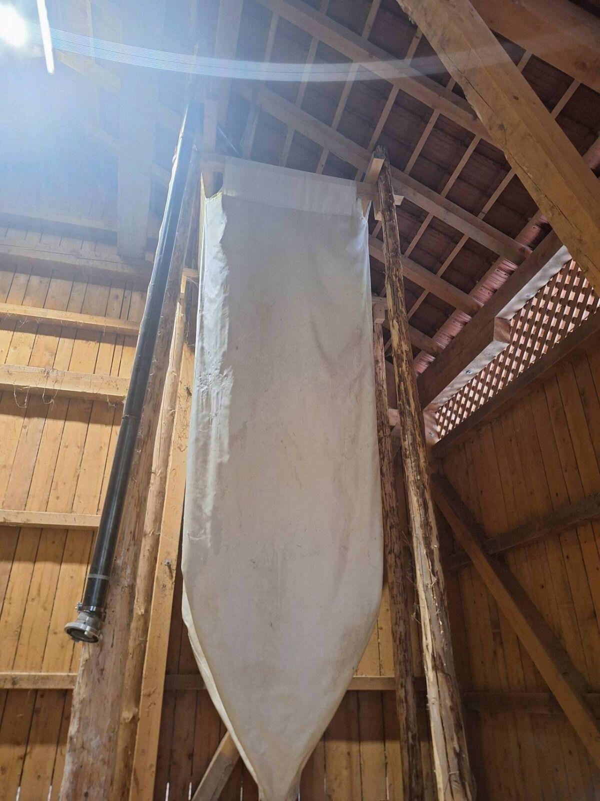 Sacksilo, Hängesilo, mit Einfüllstutzen für Lkw und Ablassstutzen. Silo ist in Top-Zustand und nicht defekt, mit Ablassstutzen. Sprzęt do karmienia zwierząt Technika