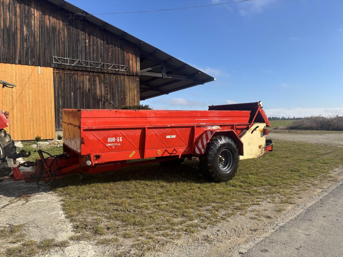 Verkaufe meinen 5, 5 t Miststreuer mit Druckluftbremse, hydr. Mengendosierer, Zusatzbordwand, eine liegende Streuwalze und 4 Verteilerscheiben. Eignet sich auch zum N