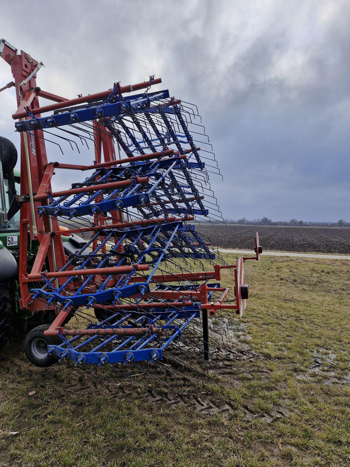 Bj. 2017, 8 Striegelfelder à 60 Zinken, Striegelzinken 600 mm mit 7 mm Dm., Strichabstand 2, 5 cm, 4 Gummistützräder vorne, 2 Gummistützräder hinten, Spur bis 200 cm