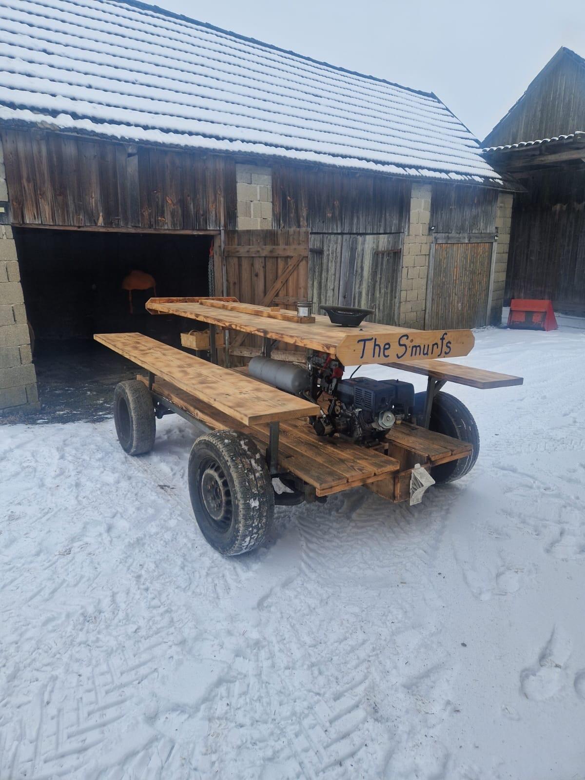 Baustellencontainer mit Einrichtung, L 6 m, B 2, 50 m. Container kann mit Traktor gezogen werden. Eigengewicht 3, 5 t, 2 Achsen. Betriebsbremsen defekt, Feststellbrems