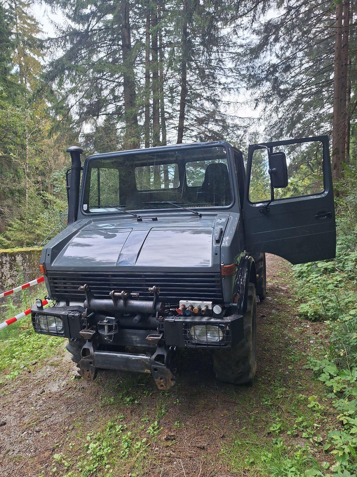 Unimog 411 Zaugg, EZ 08.1963, Inkl. Schmidt Schneefräse, Antrieb Hydraulisch über Deutz 6 Zylinder Motor, Lenkung an der Hinterachse, extra langer Radstand, Unterset
