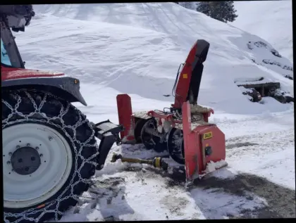 Verkaufe Zaugg Schneefräse inkl. Bedieneinheit (Steuerung, Neigungsverstellung), Breite ca. 230 cm, Höhe ca. 80 bis 100 cm. Preis auf Anfrage, nur telefonische Auskü