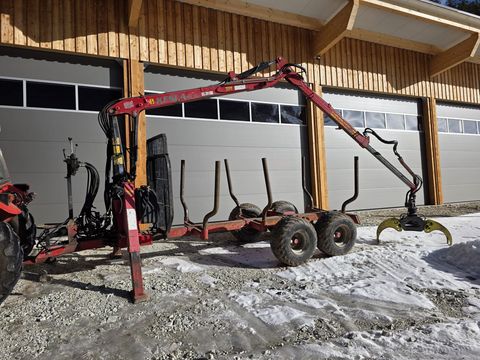 Kesla Zentralrahmen Anhänger 8t mit Forstkran 203t- 6, 7 m Reichweite- Drehhebelsteuerung- 3 Rungenpaare- A-Abstützung- Bereifung 400/60-15.5- hydraulisch