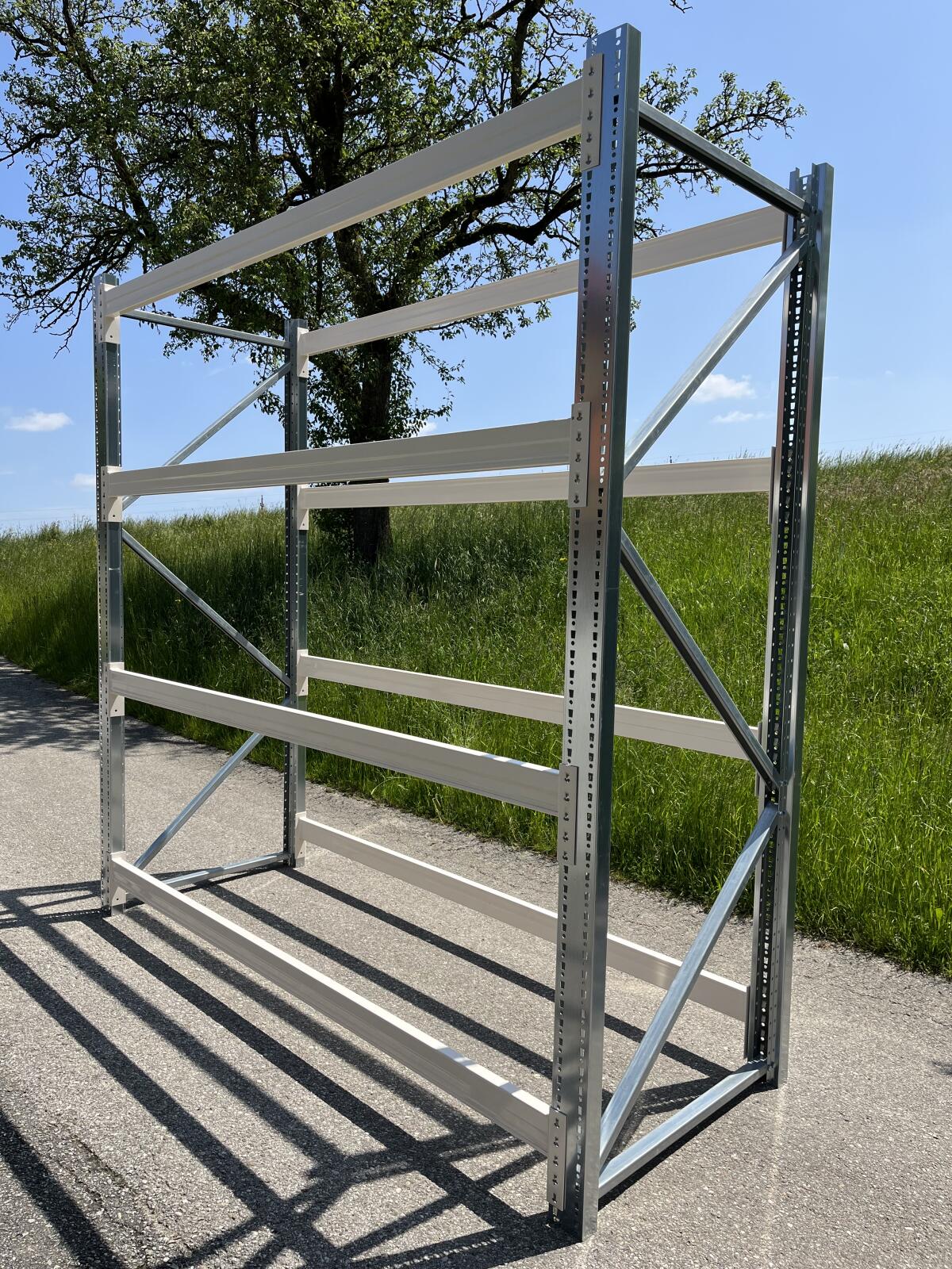 Verkaufe NEUE Teile für Palettenregal/Regal, trocken gelagert und noch nie verbaut. Maße vom Montagebeispiel: H: ca. 2, 95 m, T: 110 cm, Trägerlänge: 2, 78 m. Gesamtlä