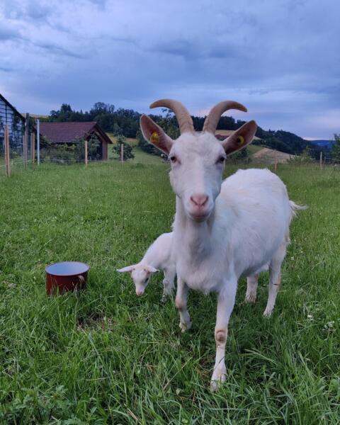 Wir verkaufen unsere 2 Ziegen, eine Saaneziege und eine Tauernscheckenziege. 2 J
