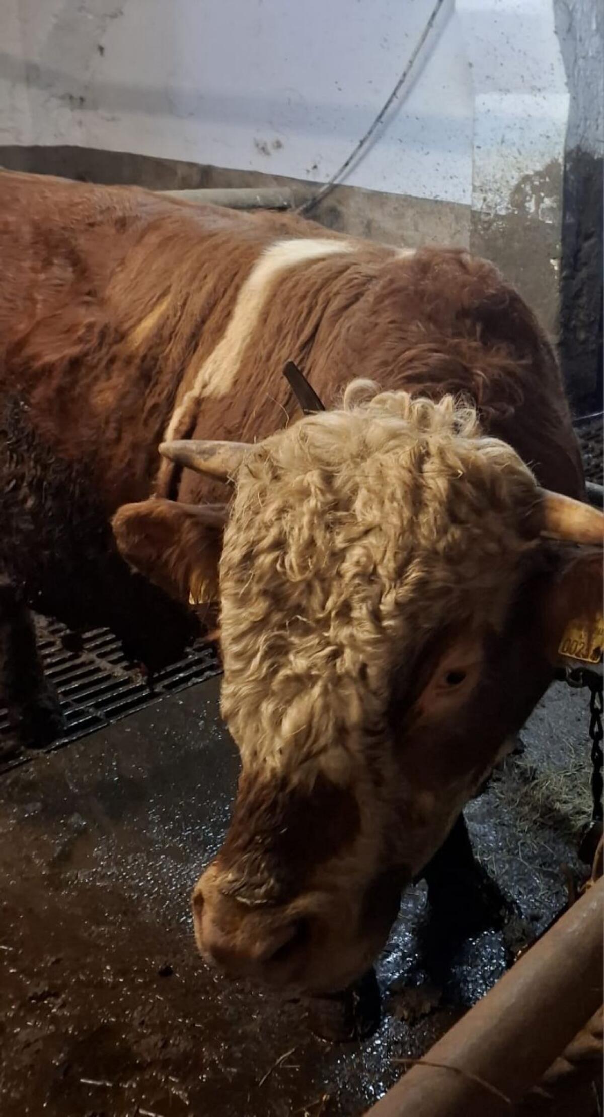 Gutmütiger Stier, geb. Februar 2004. Aus Anbindehaltung und Weidehaltung. Rindermarkt Fleckvieh