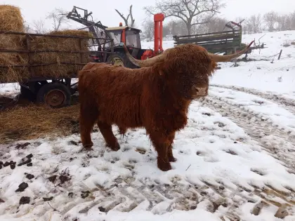Ab sofort abzugeben, verkaufe zwei Galloway-Kälbinen, Alma (schwarz, geb. 11.06.2025) und Karla (braun, geb. 15.07.2025), weidezaungewohnt. Wenn möglich, würden wir